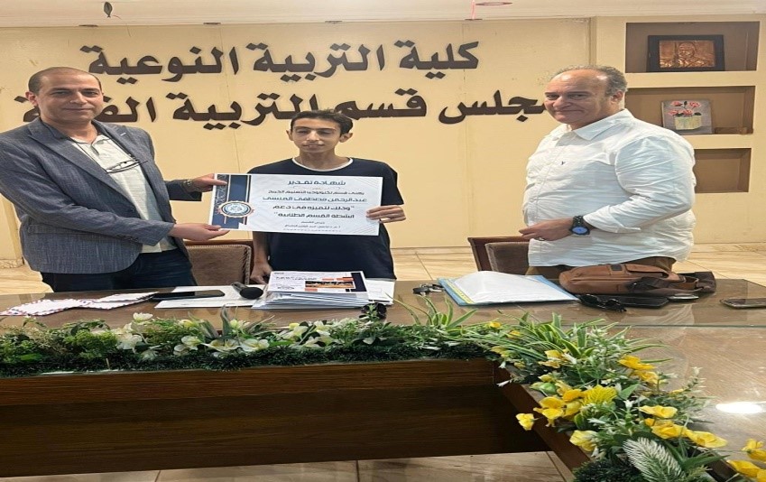 في اطار السعي المستمر للمشاركة والابداع نظم قسم تكنولوجيا التعليم تحت رعاية عميد الكليه الاستاذ الدكتور/ محيي الدين العلامي واشراف الدكتور/ حسن عبد العزيز الصباغ رئيس القسم، وأعضاء هيئة تدريس والهيئة المعاونة، مسابقة “شارك إبداعك"، التي نظمها القسم خلال العام الجامعي 2024/2025م. وقد تم تكريم الطلاب المتميزين وهو رويدا أسامه الجوهري على المركز الأول، بينما حصل الطالب كريم عبدالرحمن الصالحي على المركز الثاني والطالب أحمد أشرف اللكزي علي المركز الثالث وتكريم الطالب عبدالرحمن مصطفي المنسي علي تميزه في الأنشطة الطلابيه بالقسم. متمنيين لهم مزيدا من التقدم والتميز