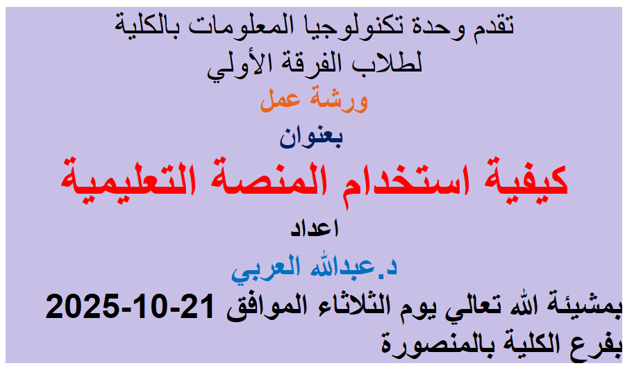 تحسين نواتج التعلم المستهدفة باقسام الكلية المختلفة بالمنصورة وفرعيها ، وذلك من خلال توظيف فعال لتطبيقات تكنولوجيا المعلومات والاتصالات فى دعم إستراتيجيات التعليم والتعلم والتدريس