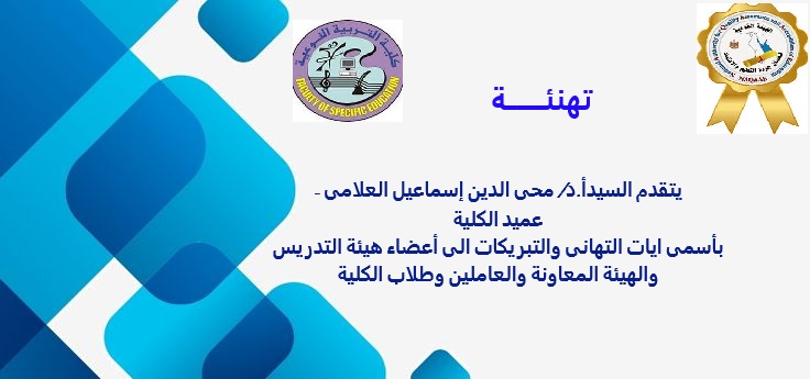 يتقدم أ.د/ محى الدين اسماعيل العلامى - عميد الكلية باجمل التهانى القلبية والتبريكات للسادة اعضاء هيئة التدريس والهيئة المعاونة واعضاء الجهاز الادارى والطلاب للحصول على الاعتماد